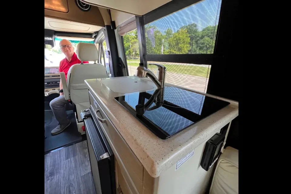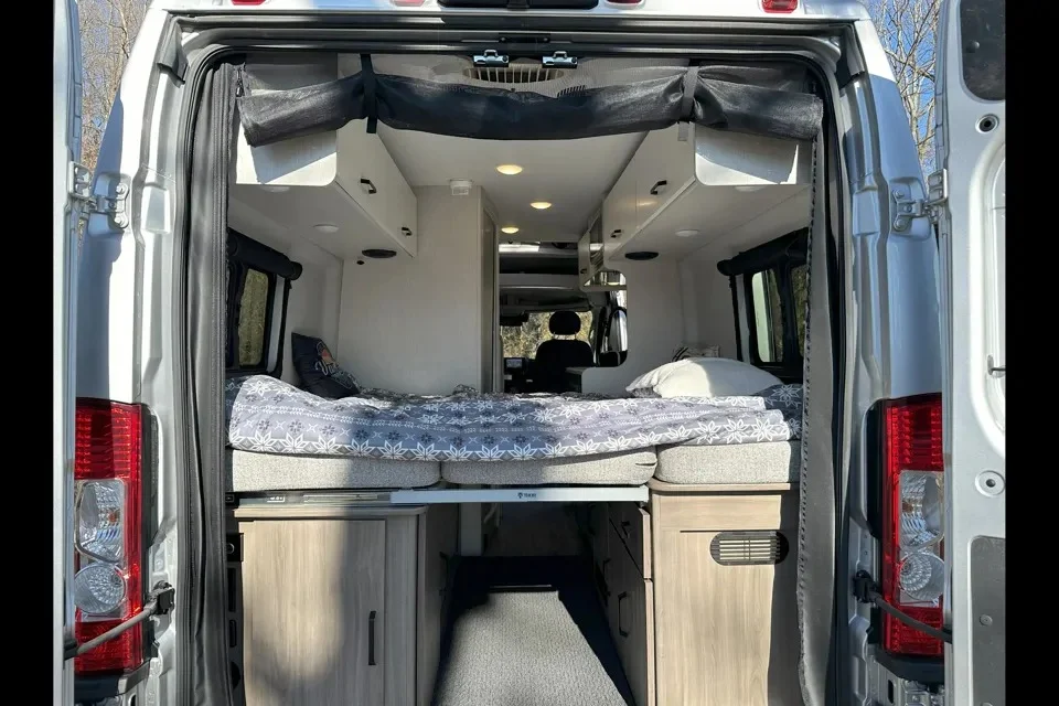 “StormBreaker” yepyeni 2023 model Thor Motor Coach Twist karavanımızdır. 6,4 m uzunluğundaki bu kompakt Class B aracımız bir pikap büyüklüğünde olup 4 yolcu için seyahat ve konaklama imkanı sunar. Tamamen off-grid yaşama uygun olacak şekilde güneş panelleri, invertör ve entegre jeneratör ile donatılmıştır; kamp alanı elektriğine bağlanabilir veya kendi bataryalarını şarj ederek doğada özgürce konaklayabilir. İç bölümde ortada duş, lavabo ve tuvaletten oluşan “wet bath” bulunur; arka tarafta geniş bir yatak arka kapılar açıldığında doğanın içinde uyumanızı sağlar ve sineklik mevcuttur. Tavan açılır SkyBunk® alanı ikinci bir yatak sunar; tenteli tavan bölmesinde pencereler, ışık ve USB portları vardır. Akıllı dokunmatik kontrol paneliyle tüm sistemleri kolayca yönetebilir, Bluetooth üzerinden telefonla bağlantı kurabilirsiniz.